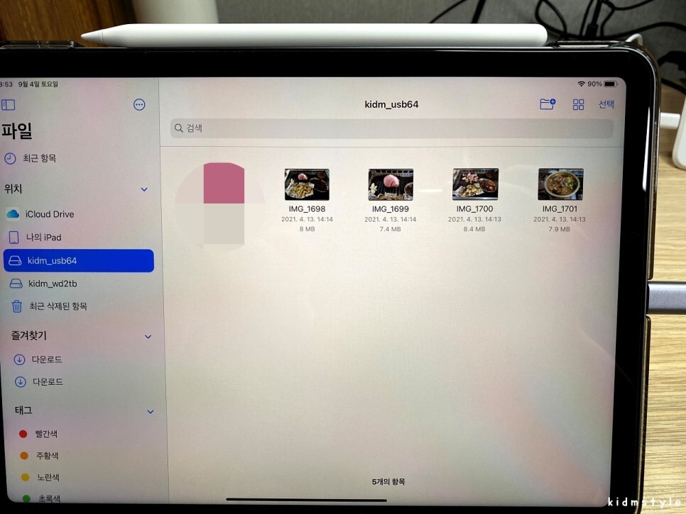 usb에 사진을 몇 장 넣어보았다. 아이패드에서 잘 읽어진다.