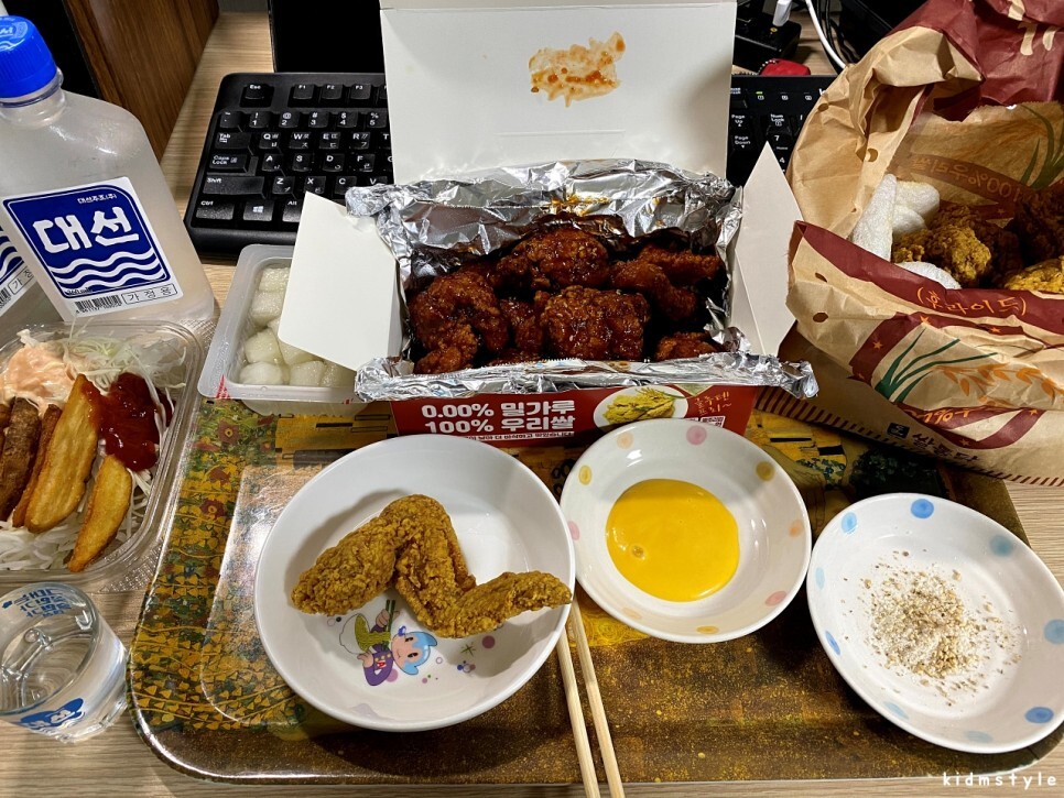 차려보았다. 나는 닭다리보다는 날개가 원픽이다. 날개가 맛있다. 예전부터 닭날개를 먹으면 바람난다고 날개를 먹지 말라는 속설이 있었다. 닭의 날개가 가장 맛있는 부위라 일부러 그런 루머를 퍼트렸다는 주장이 힘을 얻고 있다. 믿거나 말거나~