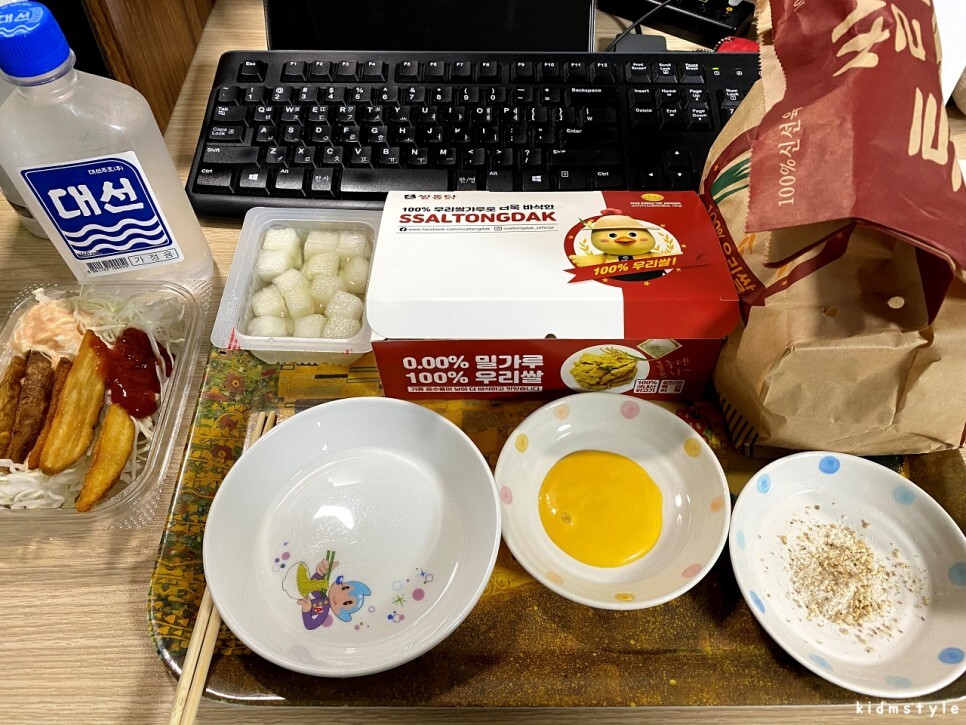 배가 고프므로 얼른 차려보았다. 좌식으로 테이블에 상 차리고 tv 보면서 먹다가 요즘은 계속 컴퓨터 앞에 앉게 된다. 머스타드 소스는 집에 있는 것을 담았고 소금에 깨소금과 후추를 추가했다.