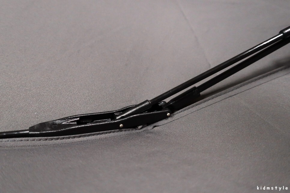 우산을 펼칠 때 누르는 버튼이다. 참고로 버튼 밑 손잡이도 좌우로 돌아가는 형식이다. 아무튼 태풍에 맞서는 우산이다.