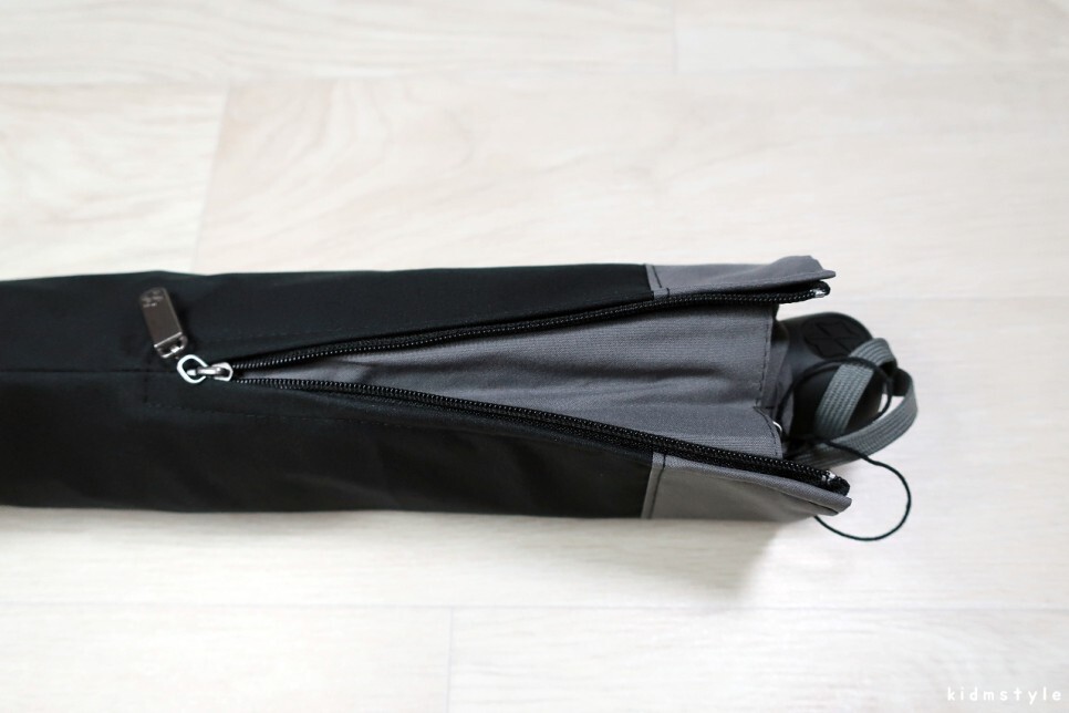 우산 수납 가방 옆면에는 지퍼가 달려있다.