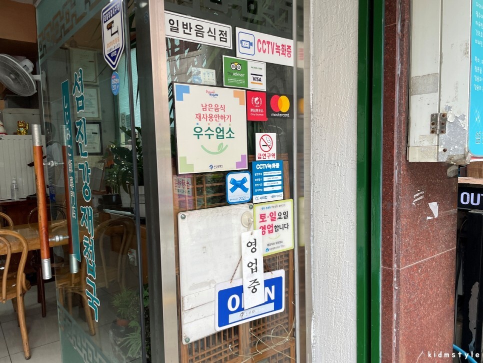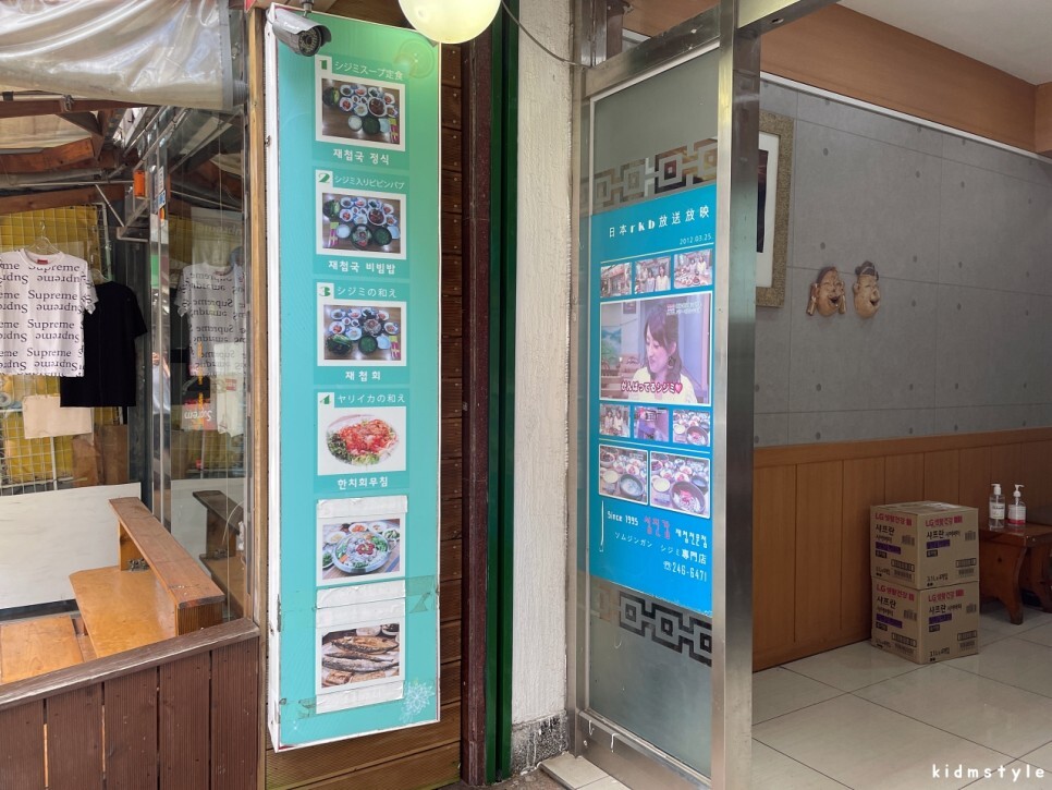 자세히 보니 블루리본서베이 2021년에 수록되었다는 스티커가 붙어있다. 나는 개인적으로 저런 부분은 신경을 쓰지 않는다. 내 입맛에 맛있어야 진짜 맛집이라는 생각이 크기 때문이다. 유리 문을 보면 알겠지만 이 식당은 일본인 관광객들에게 상당히 인기가 많은 집이다. 일본인 단골들도 상당히 많다.