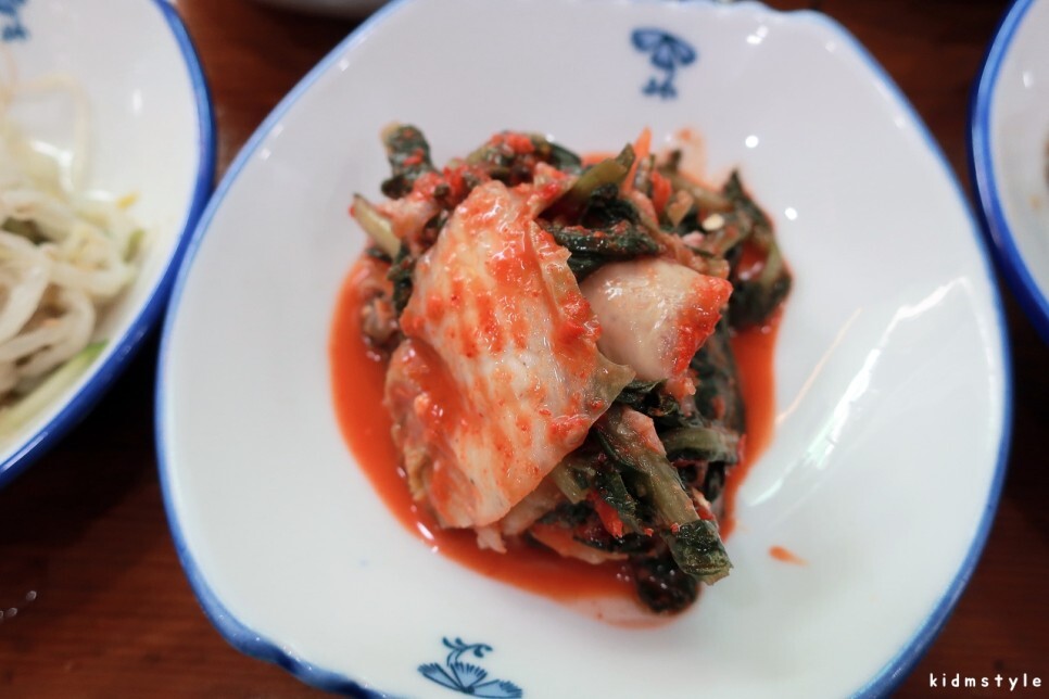 김치는 열무와 섞여 있는데 직접 담은 김치이다. 시원한 게 맛있다.