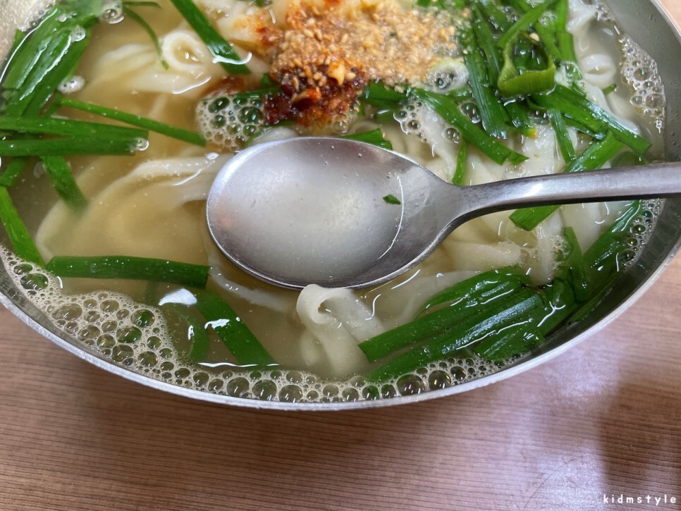 멸치 육수 기반의 시장통 칼국수이다. 깔끔하고 시원해서 마니아들이 많다. 내 입맛 기준으로는 조금 아쉬워서 영주시장 쪽 칼국수보다는 보수동 진미칼국수 등 다른 곳들의 칼국수를 즐기는 편이다. 그래서 이곳에 오래간만에 먹으러 온 것이다.
