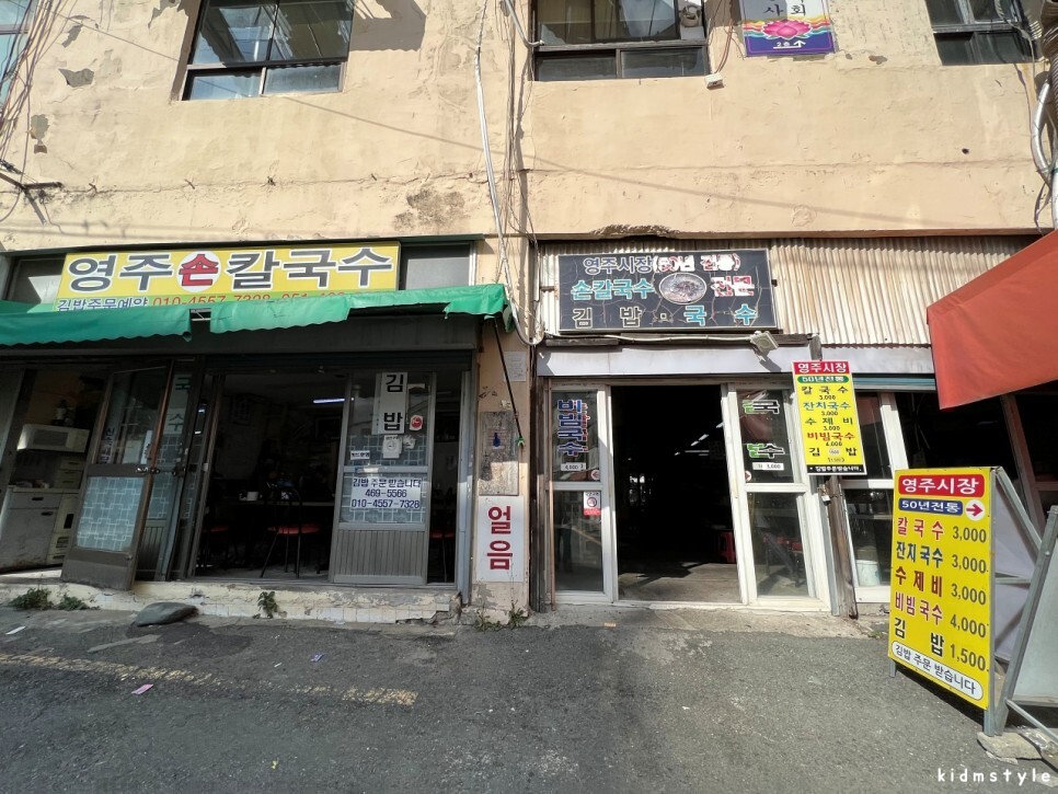 왼쪽에 영주손칼국수가 있고 들어가면 바로 오른쪽에도 영주손칼국수가 있다. 같은 집이니 참고하기 바란다.