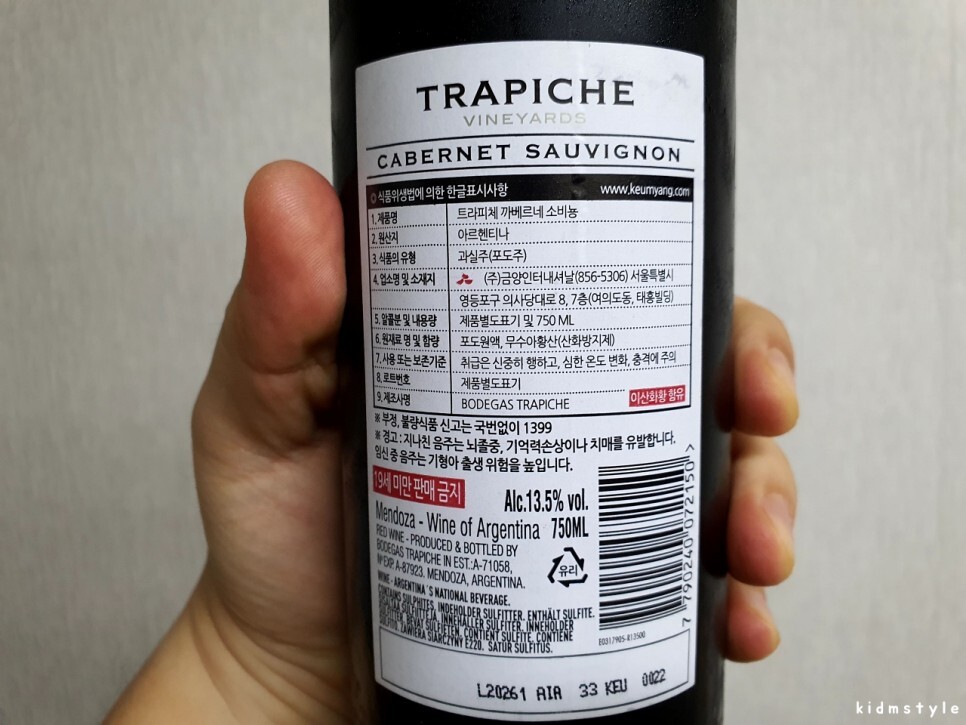 이름하여, 트라피체 까베르네 소비뇽 2020이라는 와인이다. 아직 와인의 ㅇ자도 모르는 상황이라 어디 산 포도가 맛있고 어떤 방식의 와인이 있고 이런 걸 전혀 모른다. 하나하나 공부를 하면 금세 치고 올라갈 거 같기도 한데 일단 지금은 초심자의 입장에서 와린이의 자세로 접근해 보도록 한다. 당분간은 그렇게 할 듯.