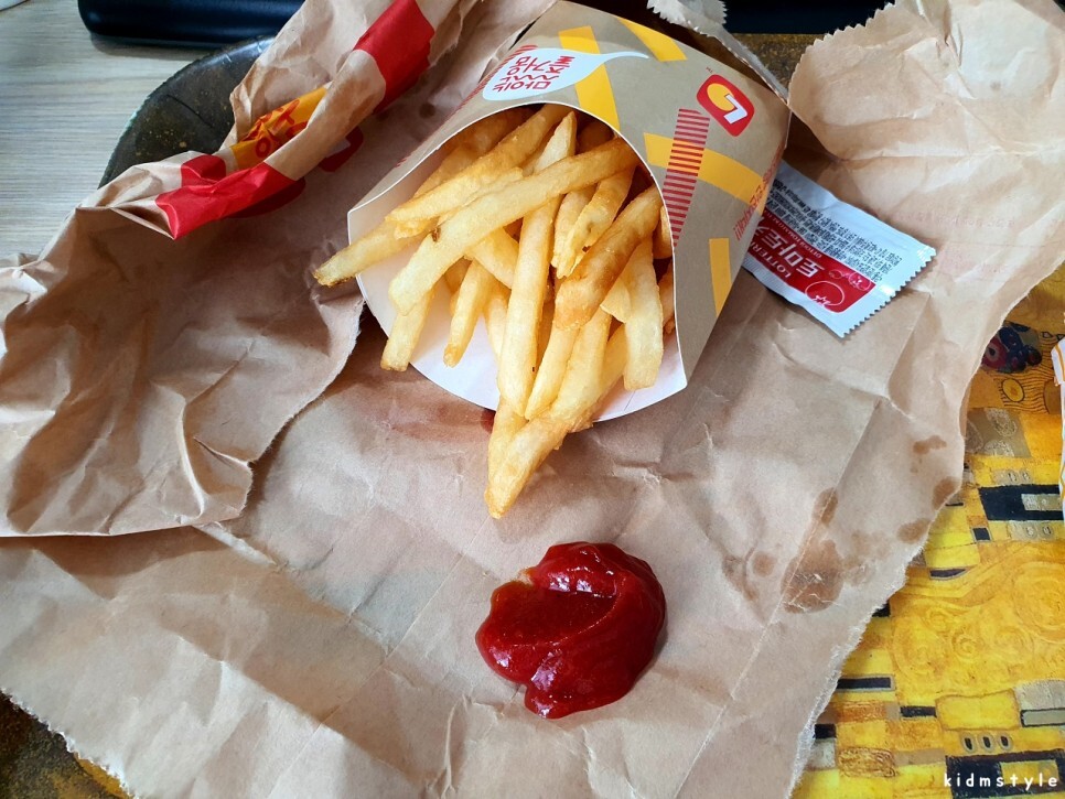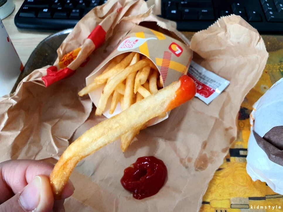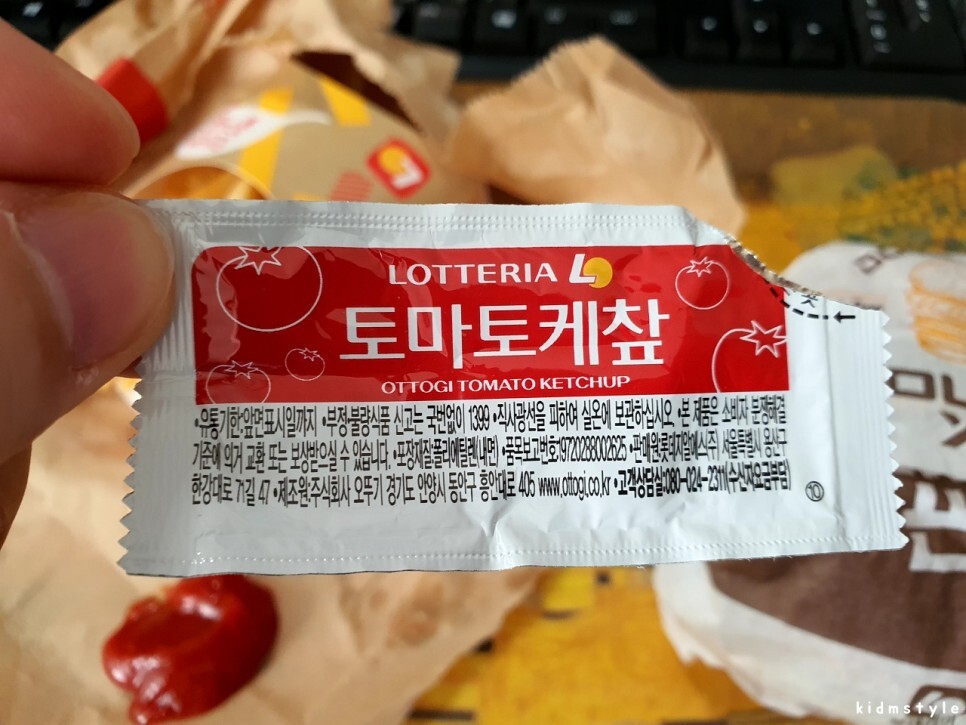 원래 케챱은 음료수 뚜껑에 짜먹는 게 국룰인데 요즘은 이렇게 포장을 해줘서 아쉽다.