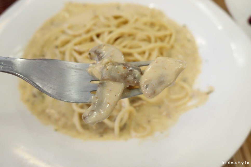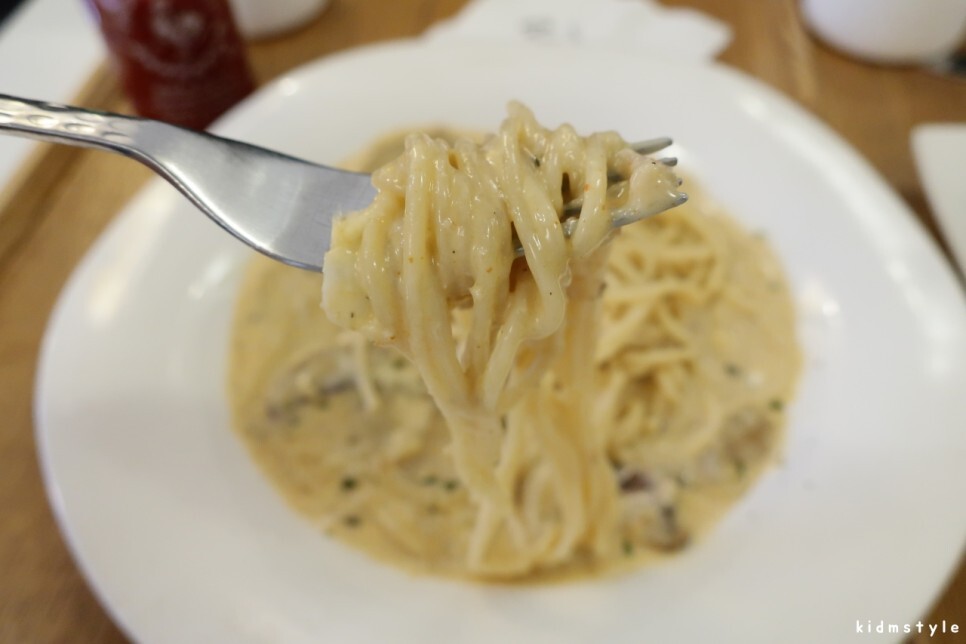 크림소스 베이스에 매콤함이 가미된 스파게티이다. 군침이 흐른다.