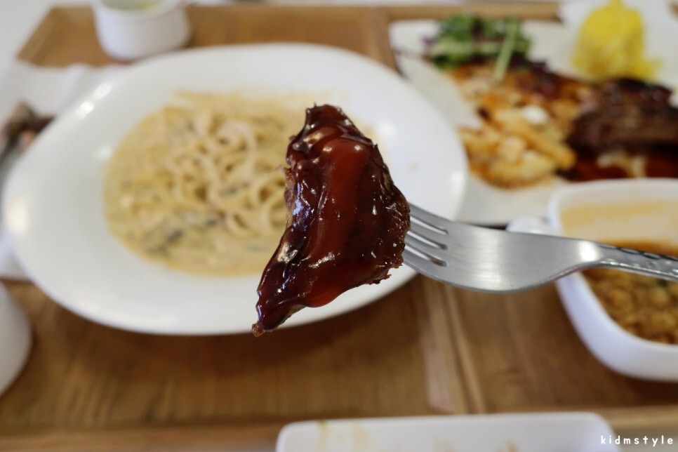 고기를 양념에 듬뿍 찍어서 먹어본다. 아~ 너무 맛있네. 다음에는 스파이시나 갈릭 소스로 맛보고 싶다. 궁금하다.