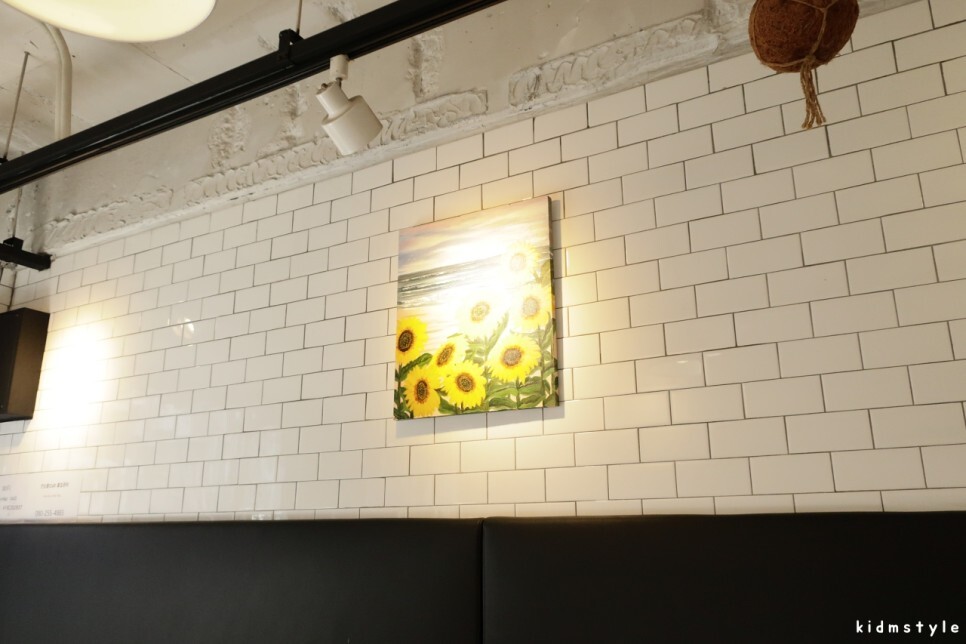 천장은 노출 배관에 벽은 타일로 마감, 해바라기 유화 한 점으로 마무리. 데이트 장소로 인기가 많은 곳이라고 하는데 어떤 맛을 보여줄지 궁금하다.