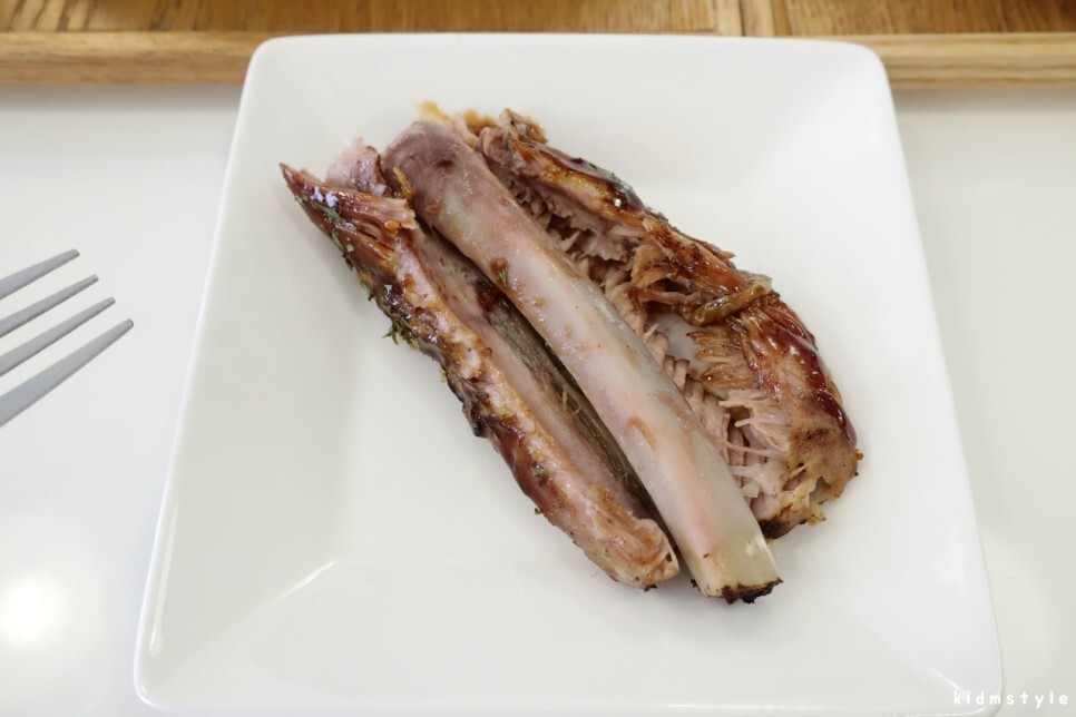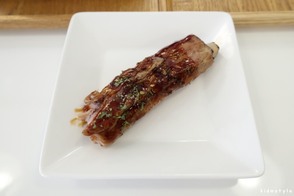 앞접시를 요청해서 립을 하나 옮겨 담았다.