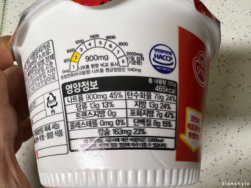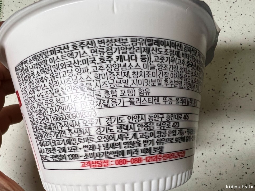 오뚜기의 스파게티나 라면볶이 등의 제품은 컵 재질이 종이가 아닌 부분은 아쉽다.