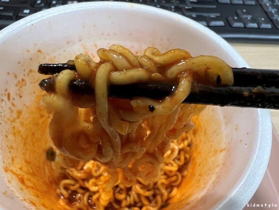 마트에 가보면 다양한 컵라면 제품들이 눈에 들어온다. 오늘은 매번 보기는 했는데 궁금했던 콕콕콕 라면볶이라는 제품을 먹어보기로 한다.