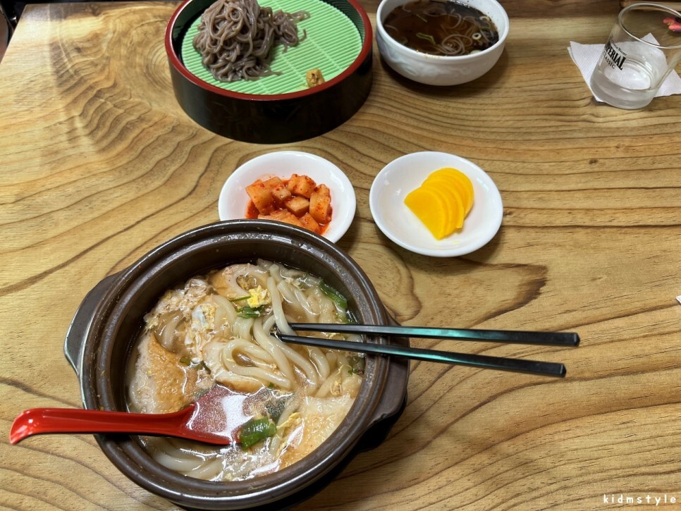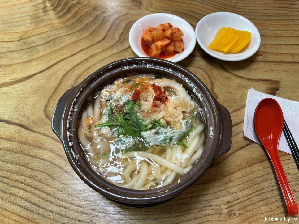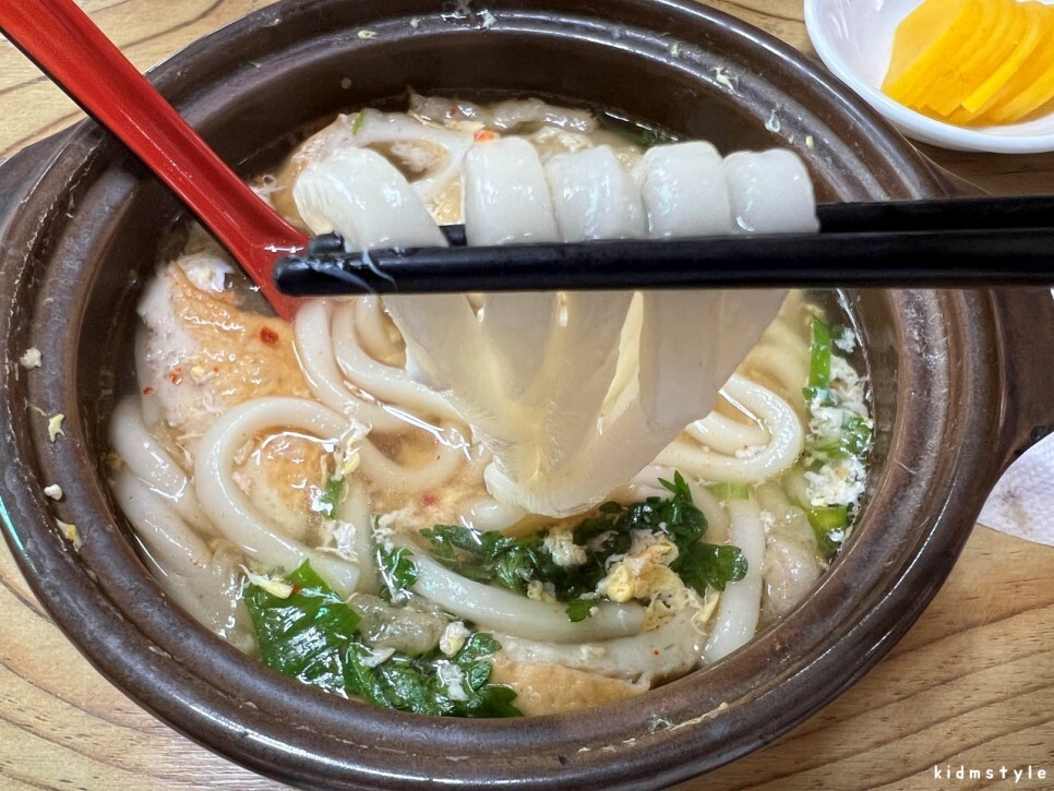 다시 본론으로 돌아와서 돌냄비우동을 맛본다. 면이 굵다. 정말 맛있다.