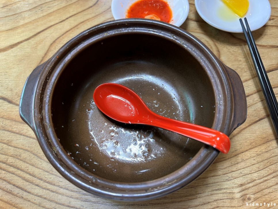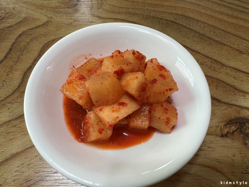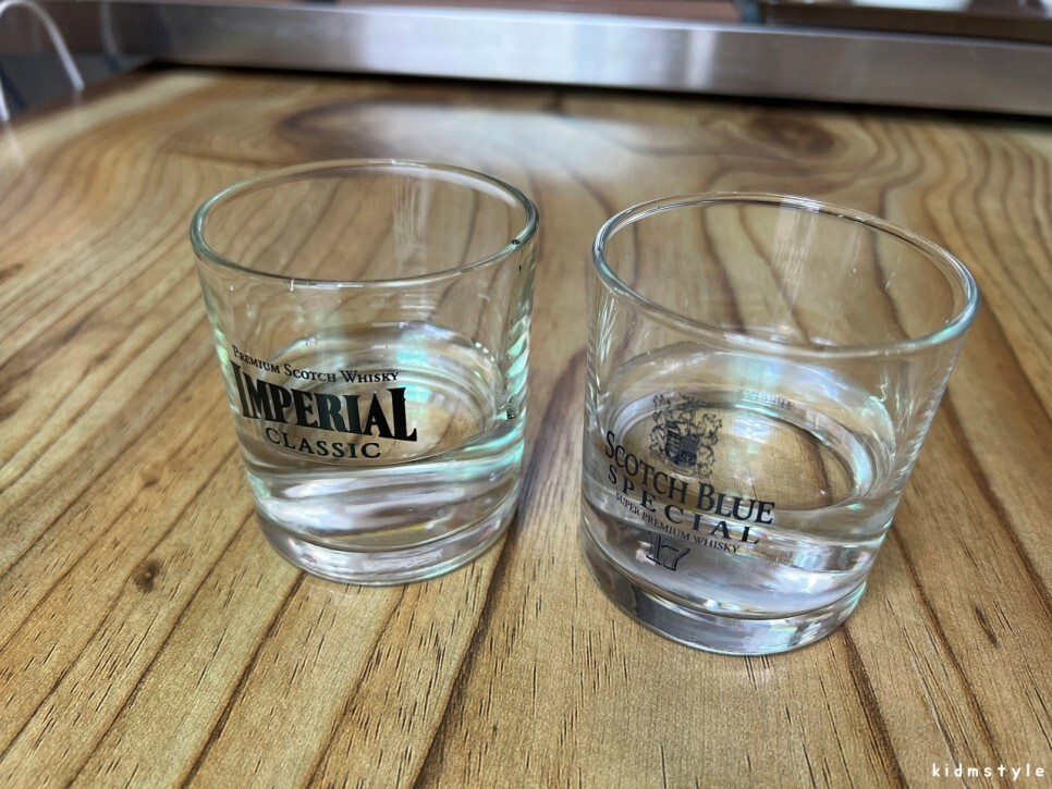 물컵이 위스키 온더락 잔이다. 컵 상태를 보니 깨끗하게 잘 관리되어 있다. 식당에 가서 그 집이 청결한지 확인해 보는 방법 중 하나이다. 맥주컵 등 유리컵 상태를 보면 답이 나온다.
