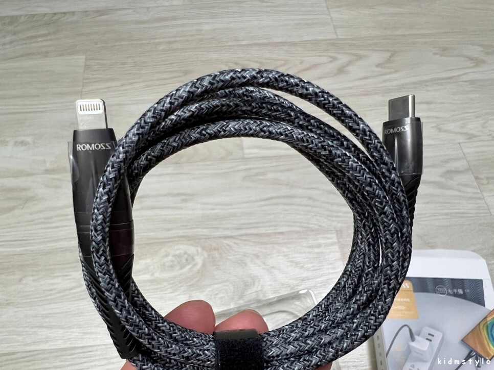 패브릭 천 재질로 되어있는 케이블이다.
