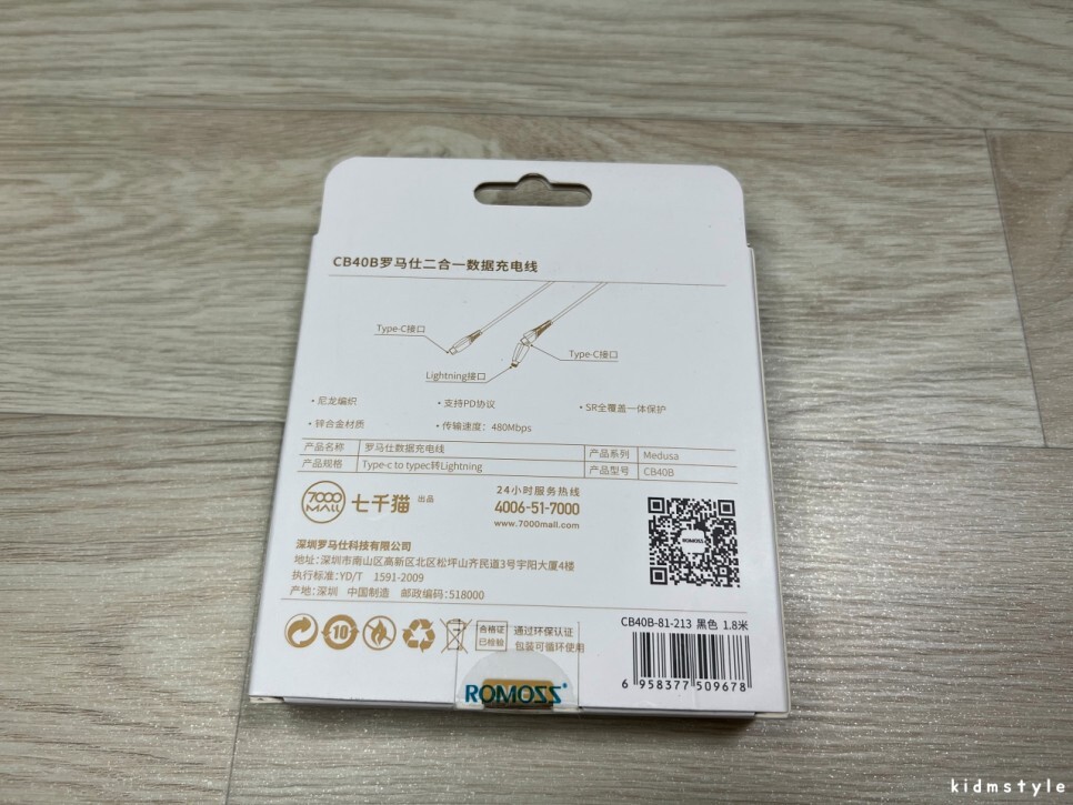 뒷면에는 스펙 사항이 적혀있다.