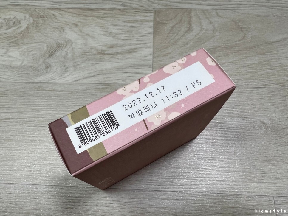 리본을 한번 풀었다가 사진 찍기 위해서 다시 묶었다. 모양이 조금 아쉽네. 처음에는 이뻤다. 끈의 색깔도 녹차 색깔이다.