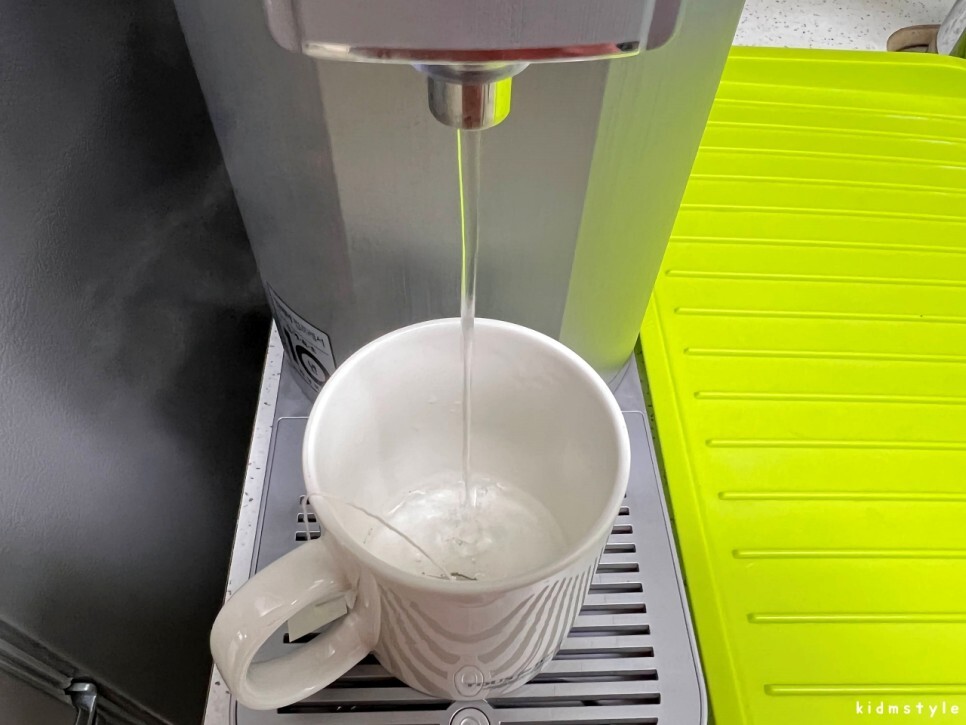 정수기의 온수 온도를 40, 75, 85도로 선택 가능한데 75도로 선택하였다.
