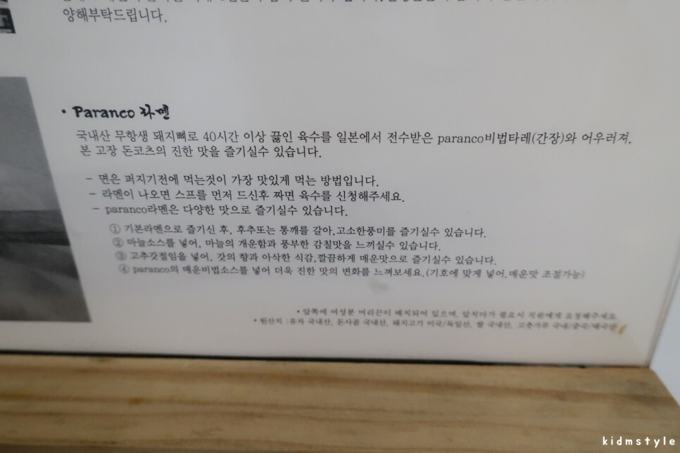 돼지뼈를 40시간 이상 끓인 육수, 일본에서 전수받은 비법타레 (간장소스)와 어우러져 진한 돈코츠 라멘의 맛을 즐길 수 있다고 한다. 기대된다.