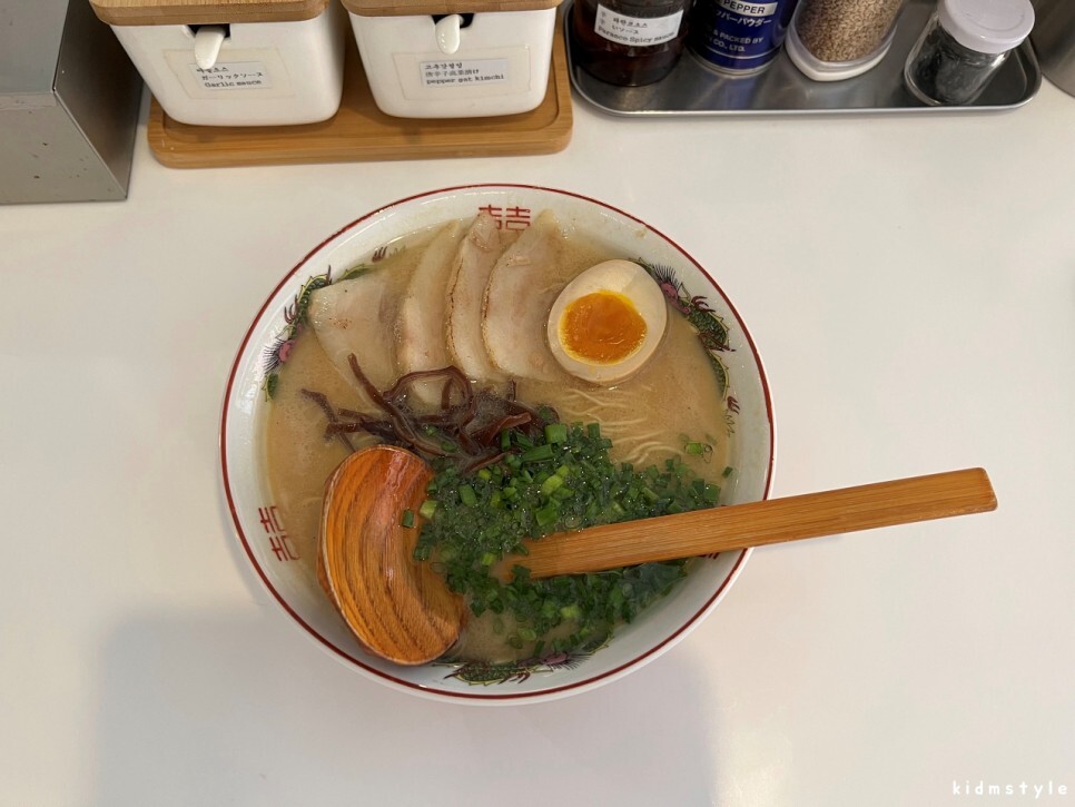 국물을 맛보니 제대로 찾아왔음에 안도감이 든다. 아주 깊고 진한 돈코츠 육수가 내 입맛과 시선을 사로잡는다.