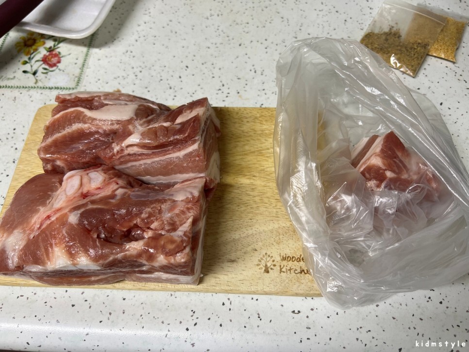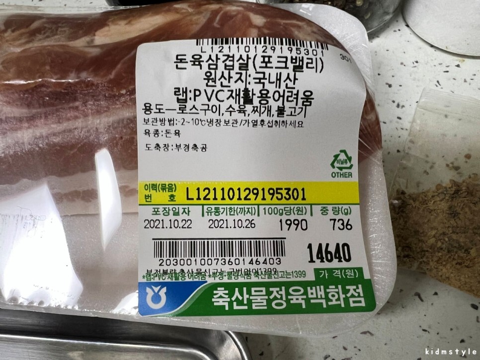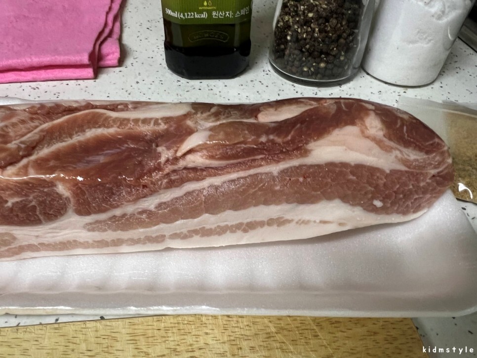 삼겹살은 시장 포크밸리 매장에서 구입했다. 저렴한 가격에 신선해서 만족한다.