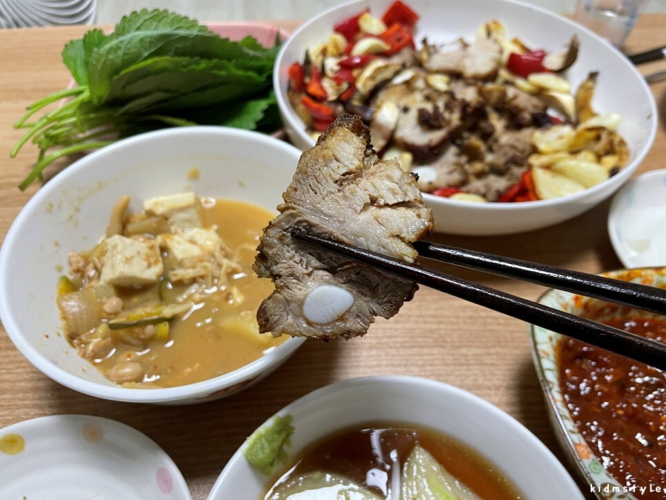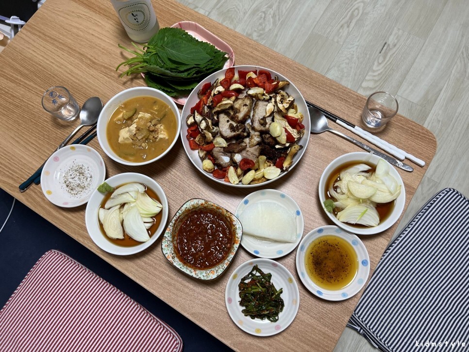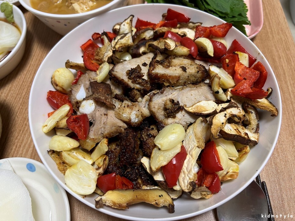 오래간만에 에어프라이어로 삼겹살 요리를 해보았는데 너무 맛있게 먹었다. 역시 집밥이 진리이다. 에어프라이어가 있다면 이렇게 꼭 조리해서 드셔보는 것을 추천한다. 잘 끓인 찌개 하나도 필수이다.