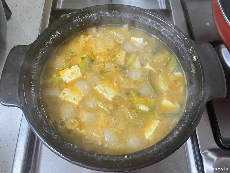 그사이 청국장을 맛있게 끓여준다. 이미 집안은 음식 냄새로 가득 차있다.