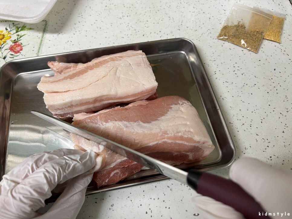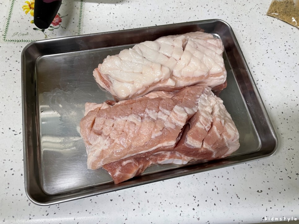 삼겹살을 좋아한다. 주로 밖에서 사 먹는 편이지만 가끔은 집에서 에어프라이어로 조리해먹고 싶을 때가 있다. 오늘이 그날이다. 집에 오면서 시장에 들러서 삼겹살을 사왔다.