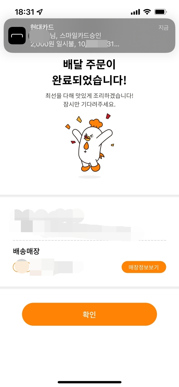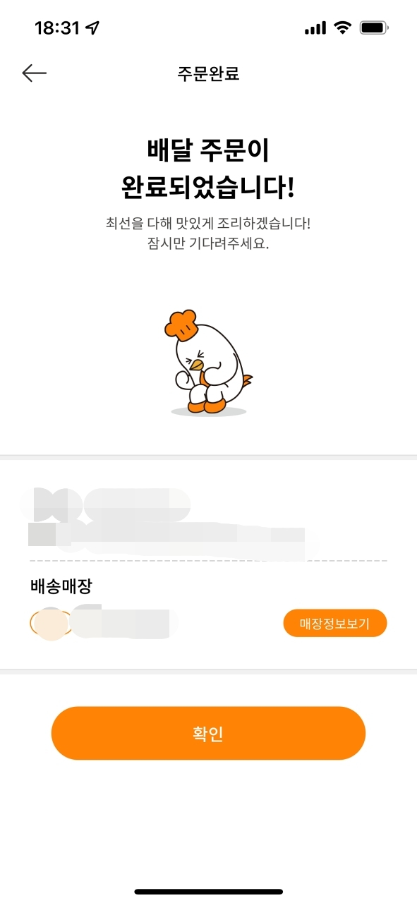 배달 주문이 완료되었다.