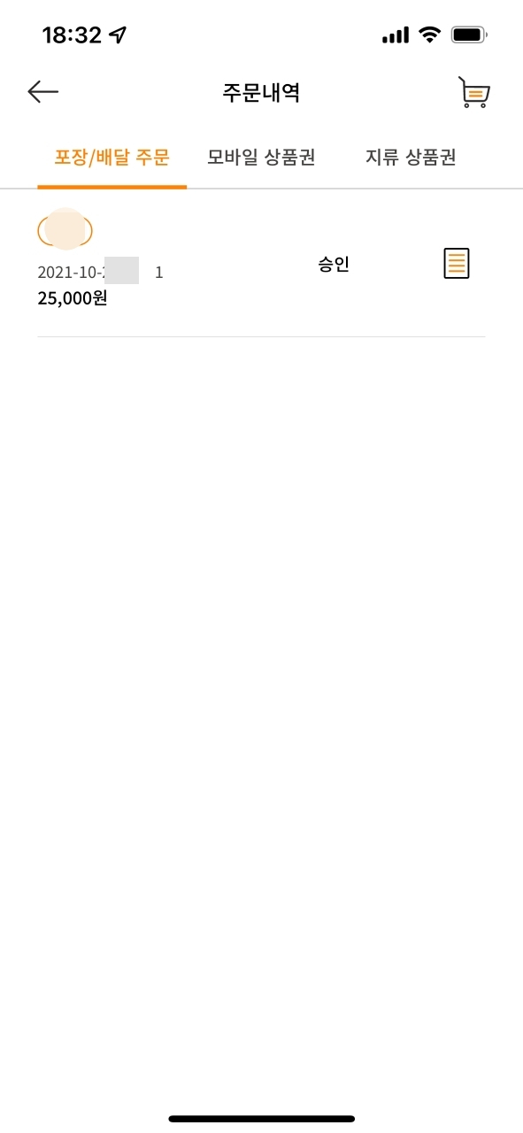 장바구니로 가서 배달 주문을 누른다.