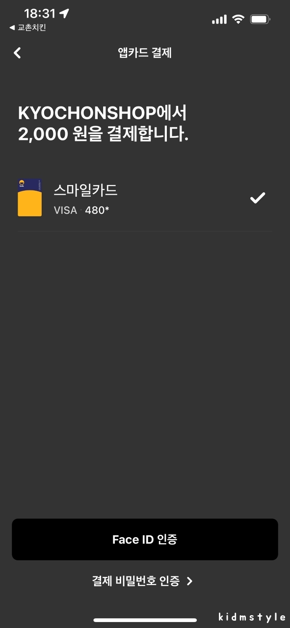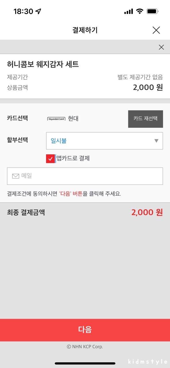 나는 현대카드로 결제를 해본다.