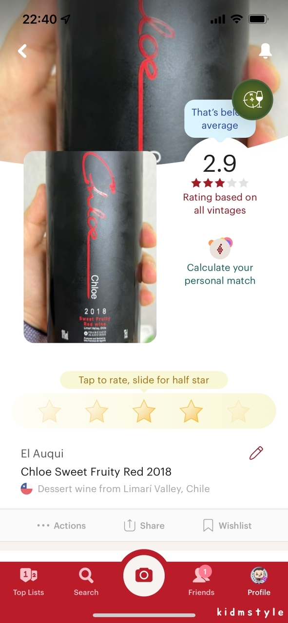 와인 정보 앱인 vivino에 스캔을 해보았다. 평점이 2.9점이다.