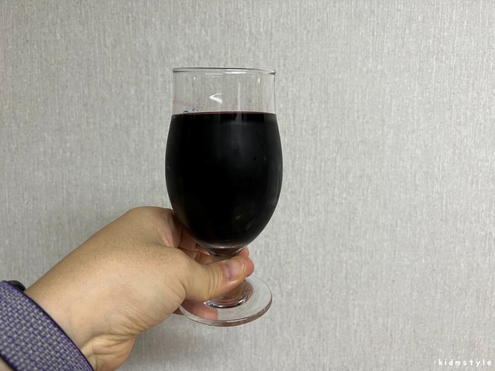 와인잔이 따로 없어서 맥주잔에 따라보았다. 와인을 마실 때 와인잔에 조금씩 따라서 마셔야 와인 본연의 맛을 느낄 수 있다고 하는데 귀찮다. 한 번에 가득 따라서 마시는 게 편하다.