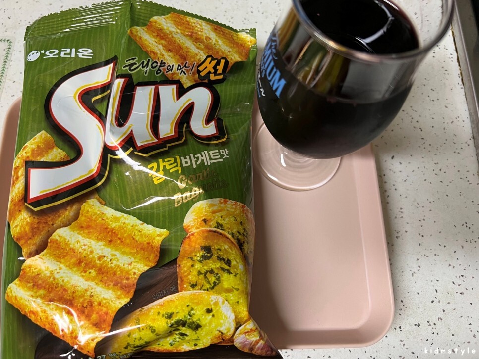 안주는 썬칩 갈릭 바게트 맛이다. 신상인데 꽤 맛있다.