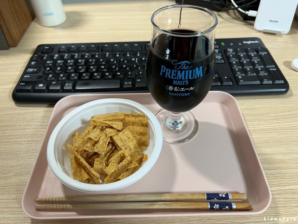 블로그 글을 쓰면서 먹어야 해서 과자는 젓가락으로 집어먹는다. 양념이 많은 과자를 먹을 때 젓가락으로 먹는 것 꿀팁이다.