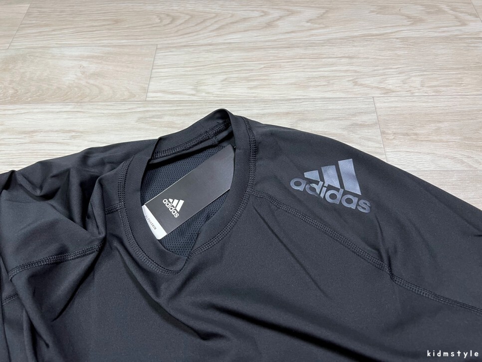 왼쪽 어깨에 아디다스 로고가 인쇄되어 있다. 개인적으로 선호하는 디자인은 아니다.