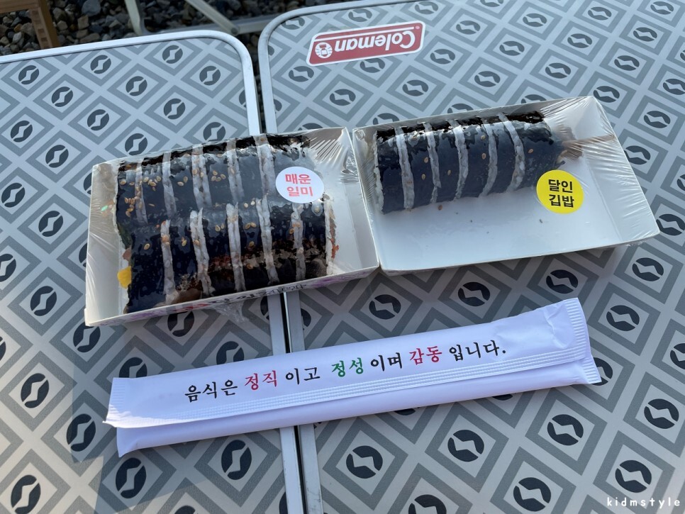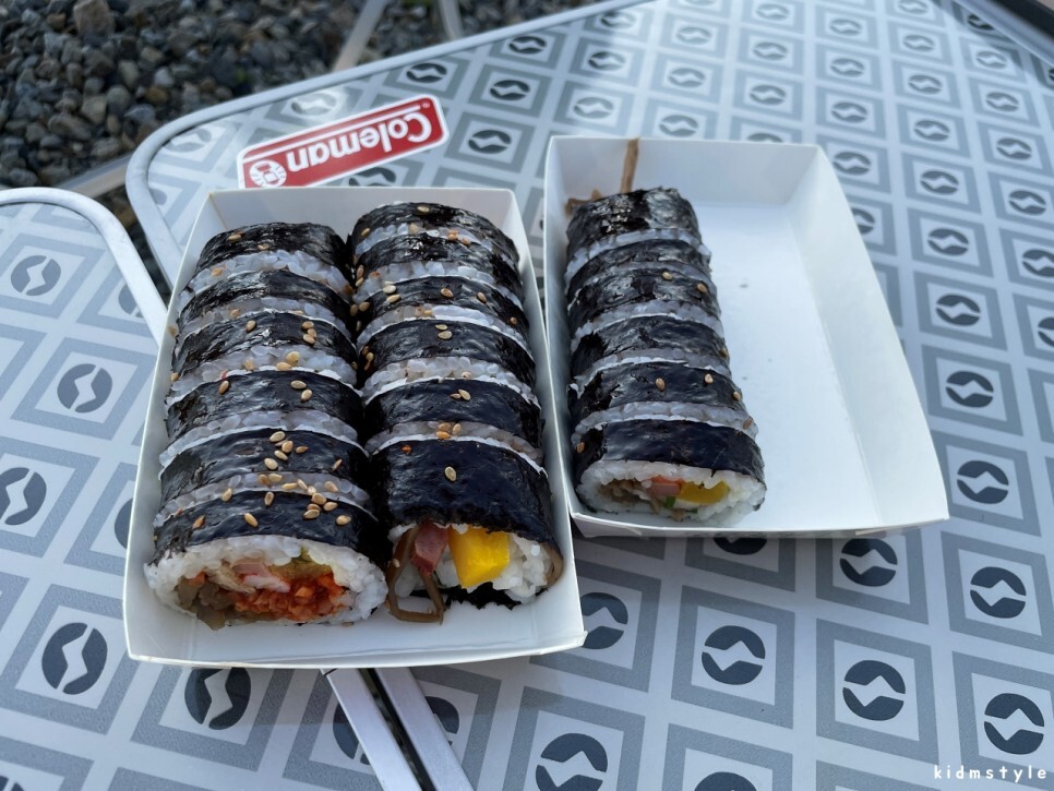 어느 날 캠핑을 가기로 했다. 늘 그렇듯 캠핑 가는 날 점심 식사가 애매하다. 보통 두 가지의 방법을 선택한다. 첫 번째는 캠핑장에 도착해서 사이트 구축을 끝내고 비빔면이나 냉면 등으로 간단하게 먹는 것, 두 번째는 미리 간편식으로 먹을거리를 준비해서 이동하는 중에 먹거나 사이트 구축하고 먹는 방법이 있다. 오늘은 후자로 선택했다. 김밥을 사가기로 했다.