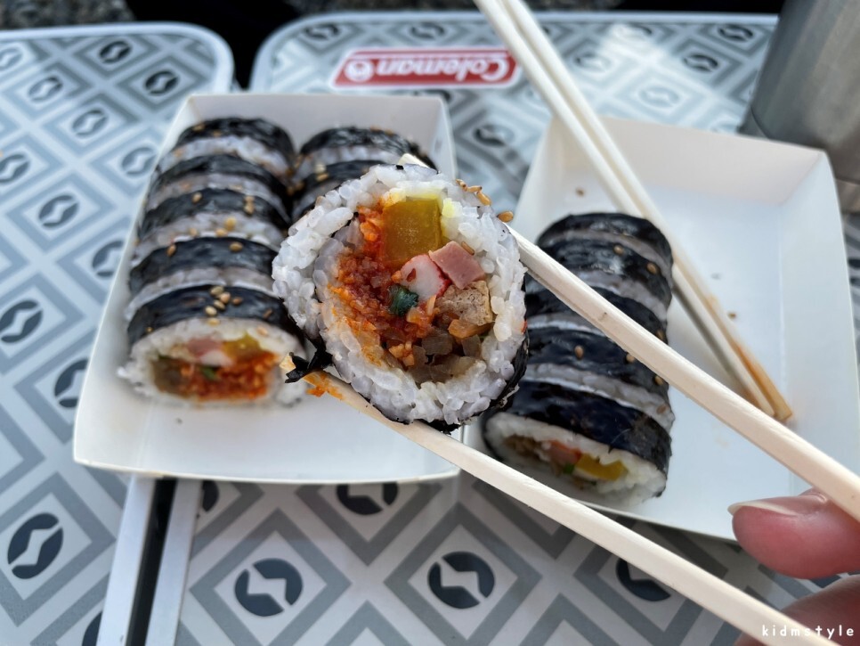 매운일미김밥을 맛본다. 김밥도 크고 속이 꽉 차있다. 적어도 비주얼만 봤을 때도 한 줄당 3천 원의 역할은 충분히 할 것 같다.