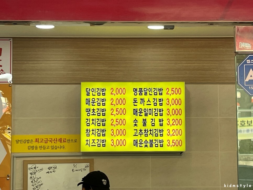 이 집은 여느 장사가 잘 되는 김밥집처럼 새벽 6시부터 오후 2시까지 영업을 한다. 그리고 재료가 소진되면 그전에 마감을 한다. 메뉴판을 찍어보았다. 가격이 아주 합리적이라는 생각이 든다. 체인점이라길래 큰 기대를 안 했는데 확실히 가격도 저렴하고 맛이 있기 때문에 손님이 많지 않을까 하고 생각해 본다.