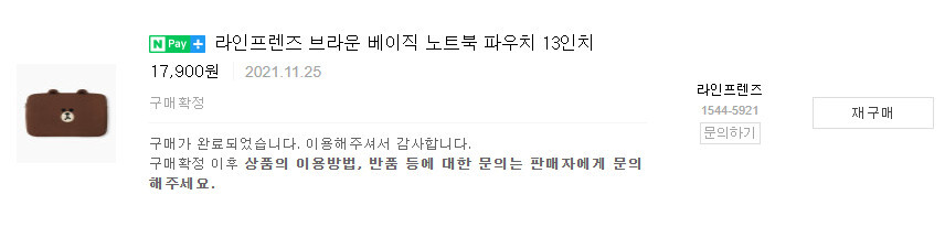 몇 년 전부터 가지고 싶었던 노트북 파우치가 있었다. 라인프렌즈의 브라운 파우치인데 마침 이번에 라인프렌즈 온라인스토어에서 블랙프라이데이 행사를 동해 50% 넘는 할인 가격에 구입하였다.