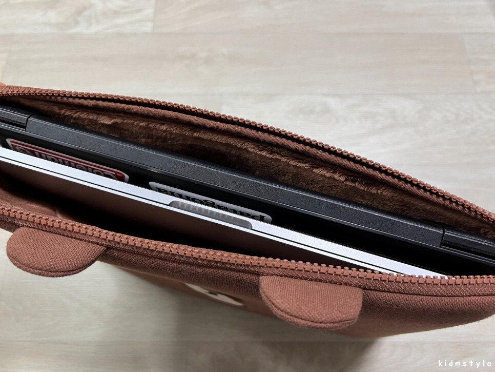 써보니 상당히 괜찮다. 재질도 부드럽고 푹신푹신해서 충격 보호도 제대로 될 것 같은 파우치이다. m1 맥북프로 파우치나 13인치 노트북 파우치를 고민하고 있다면 라인프렌즈 브라운 파우치를 추천한다.