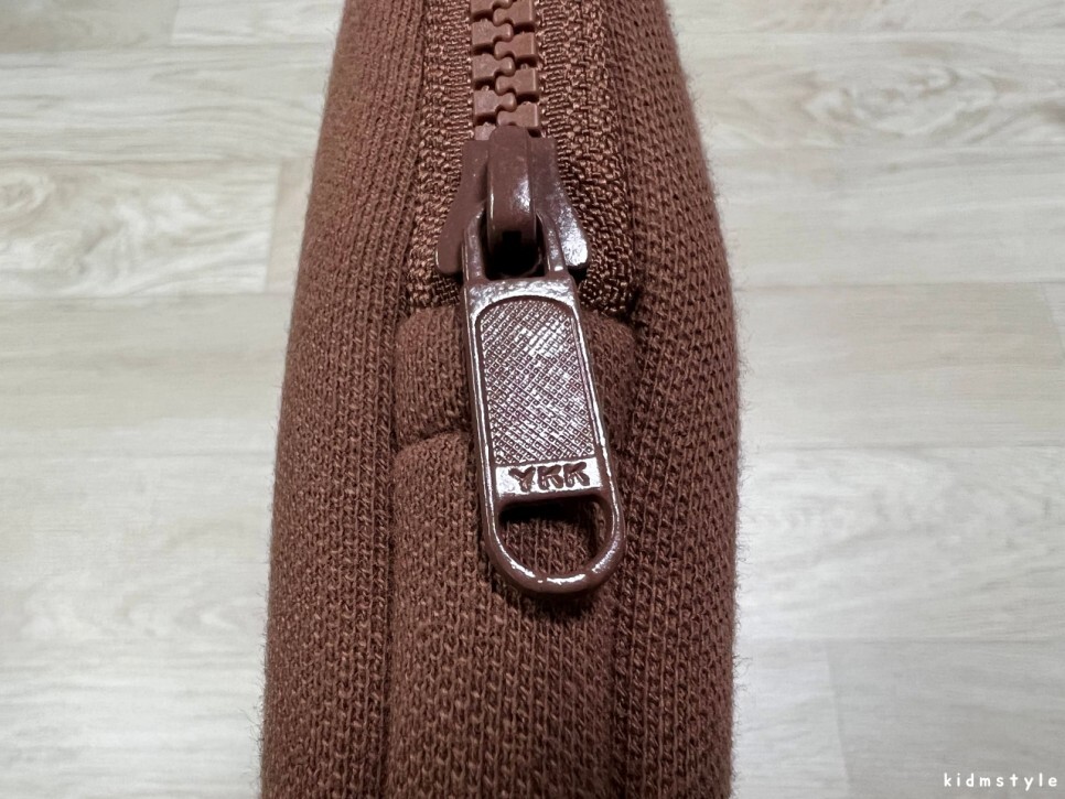 지퍼는 YKK 제품을 사용하였다. 이 파우치의 무게는 195g이며 가로 35cm * 세로 25.5cm * 두께 3cm이다.
