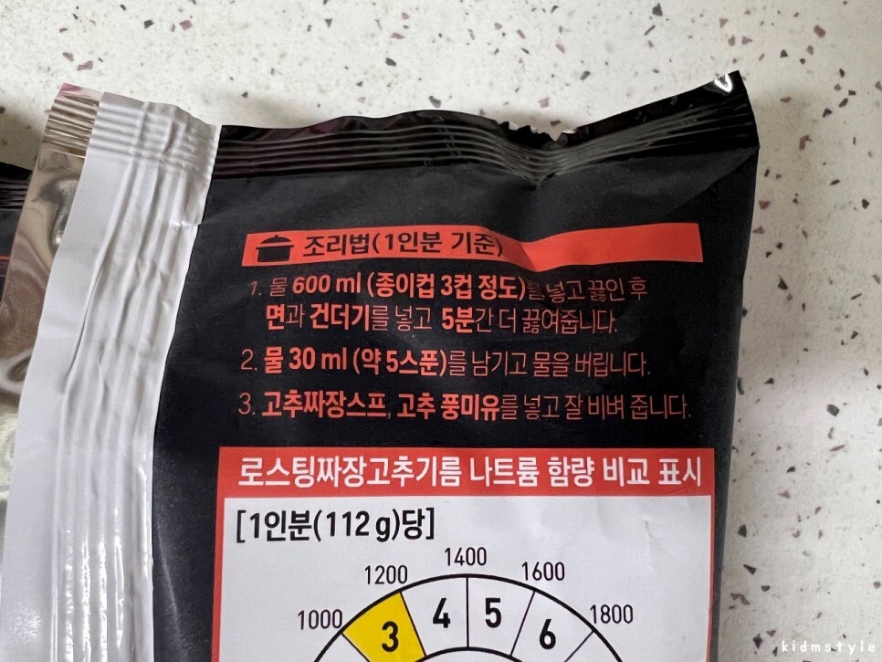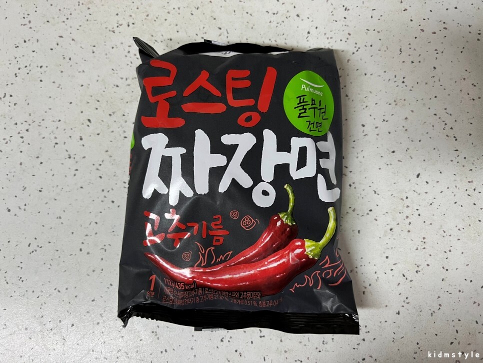 본 제품은 풀무원 로스팅 짜장면 고추기름이고 자매품으로 풀무원 로스팅 짜장면 파기름이 있다.