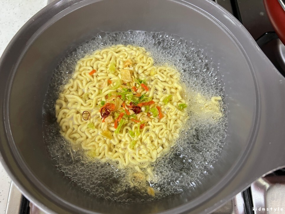 끓는 물에 면을 넣어준다.