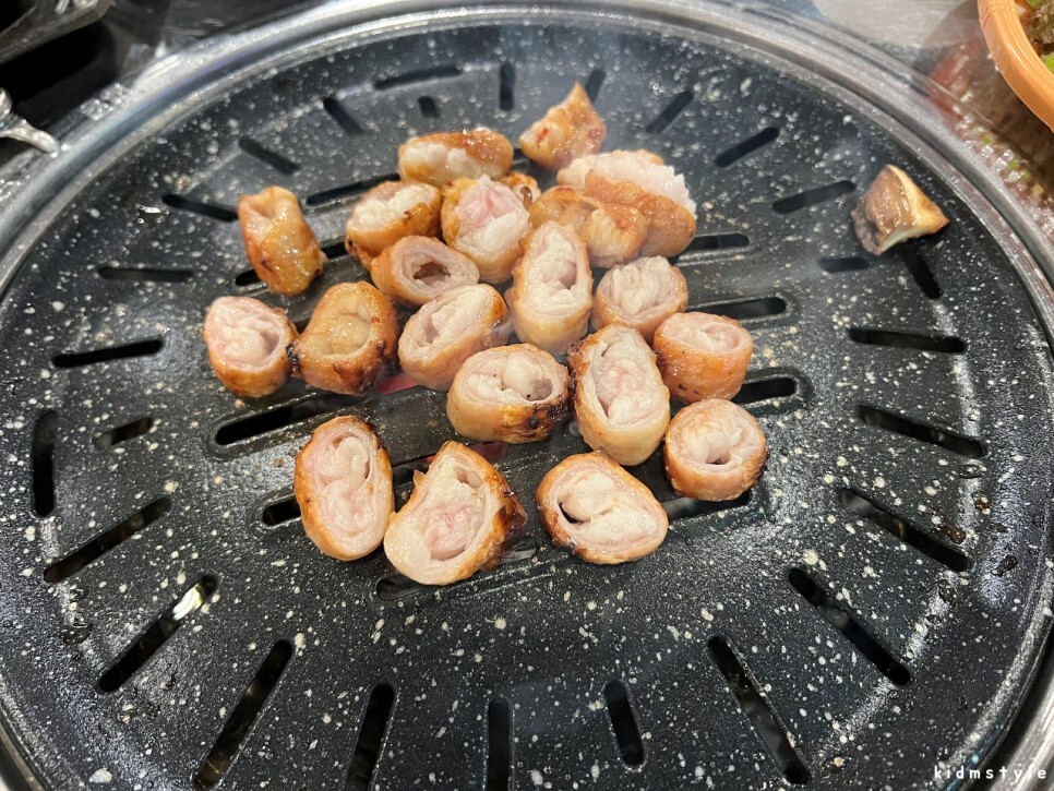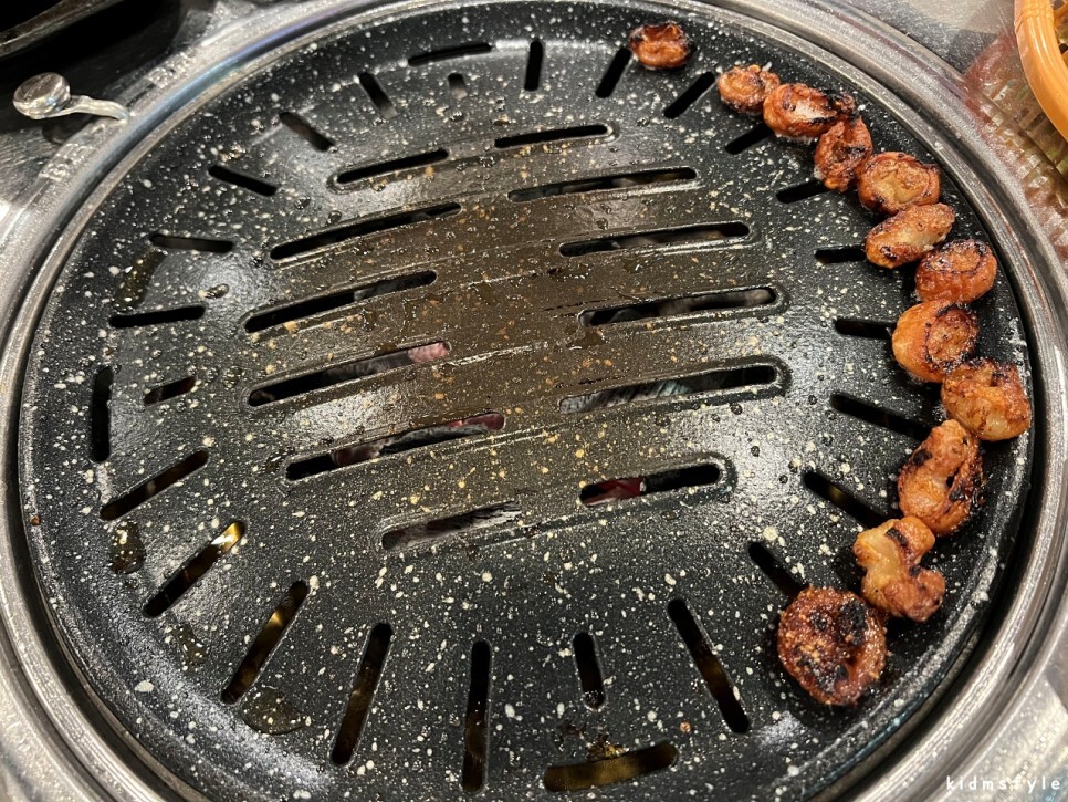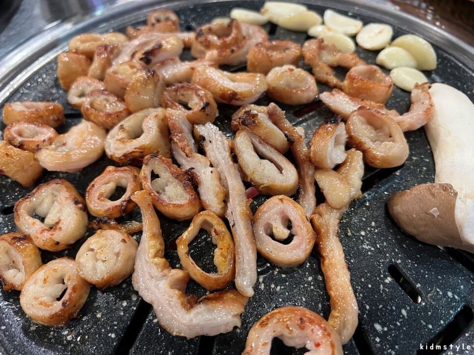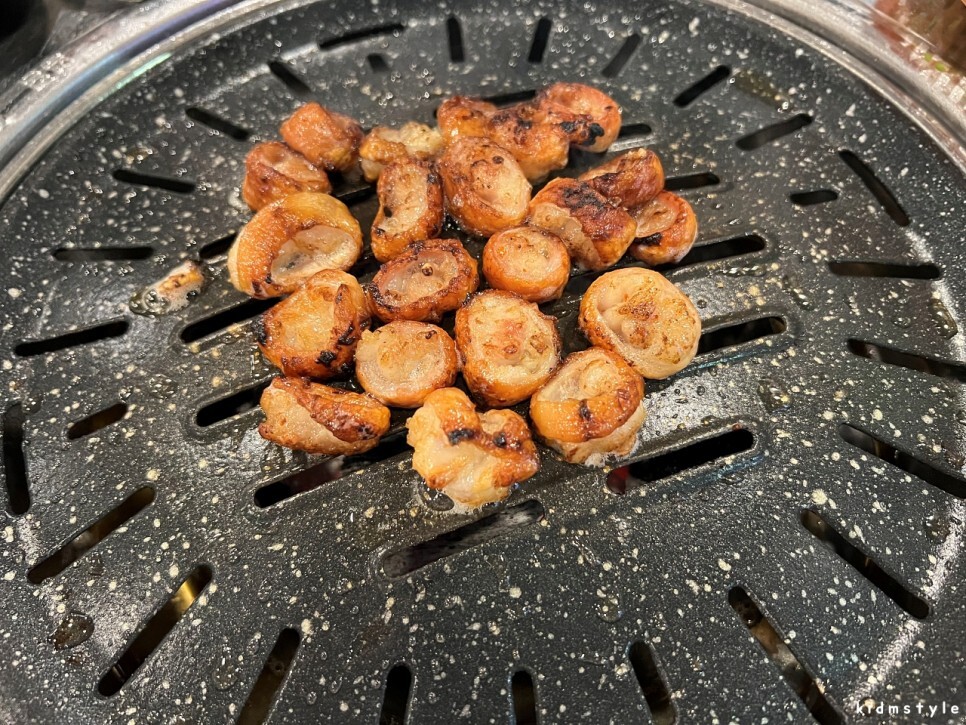 막창은 먹기 좋게 바삭 굽는 중이다.
