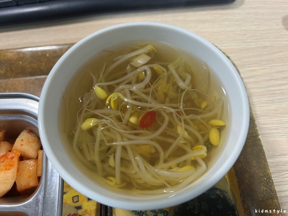 그리고 방금 끓인 콩나물국이다. 홍고추는 베란다 텃밭에서 직접 키운 고추를 홍고추로 만들어서 수확한 것을 썰어 넣었다. 내가 끓였지만 깔끔한 게 국물 참 좋네.