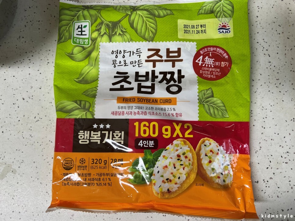 사조 대림생 주부초밥짱이다. 유부 28매 4인분이다. 유통기한이 조금 지났기 때문에 빨리 먹어줘야 한다. 나는 김밥과 유부초밥을 좋아한다. 그래서 생각날 때마다 가끔 사 먹는 편인데 김밥은 집에서 해먹는 것보다 사 먹는 게 낫고 유부초밥은 마트에서 유부를 사서 집에서 해먹는 게 낫더라.