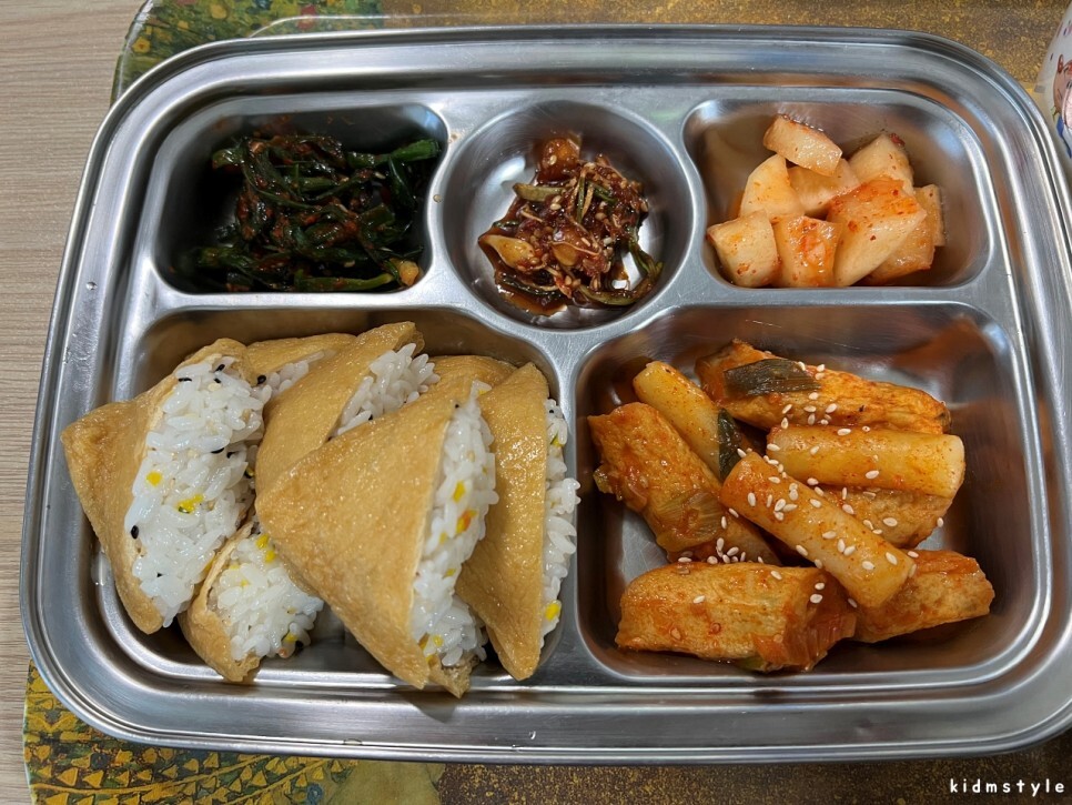 점심을 가볍게 차려보았다. 파김치, 달래장, 깍두기, 유부초밥, 그저께 먹다 남은 떡볶이