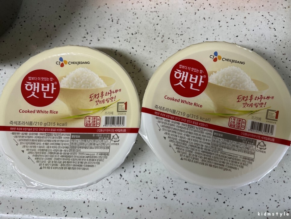고슬고슬한 흰쌀밥 대신 햇반을 준비했다.